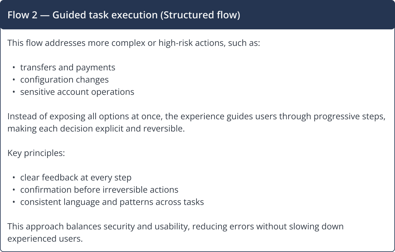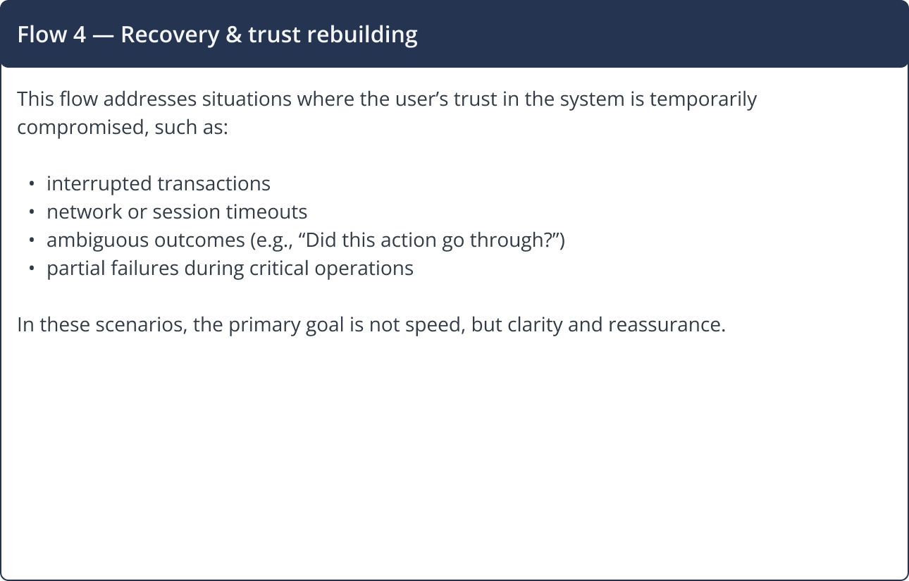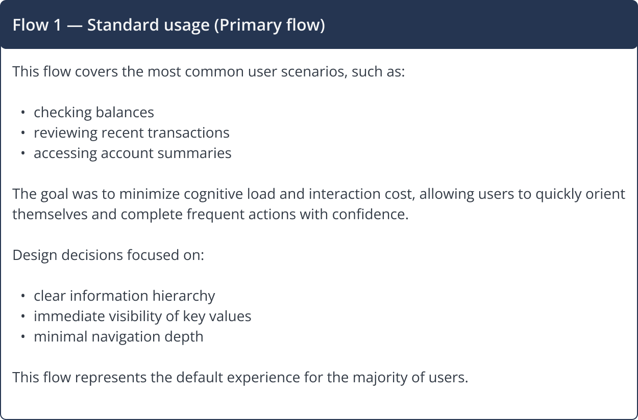 Core banking flows were designed to support both common and edge scenarios, ensuring clarity for standard operations while safely handling less frequent but critical cases.